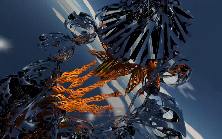 Rendering several animated files that follow a theme, often to music, then editing clips to flow with intended effects are how these works achieve their function. By using abstract and some organic forms that move through space, the element of time is employed and draws in the viewer without an overbearing narrative. Editing is essential to achieving the intended sensation and overall mood the video invites the audience to experience.